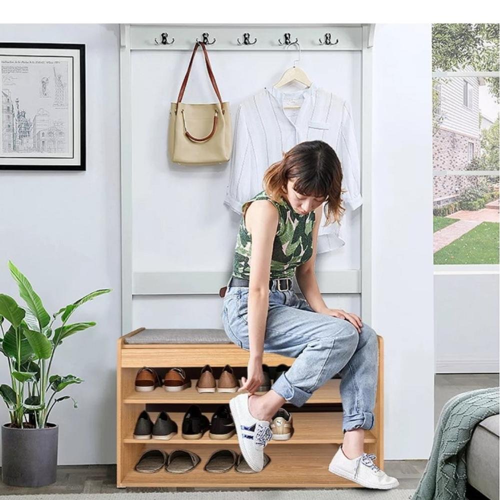 Banco Zapatero 3 Niveles con Cojín y Almacenamiento Oculto