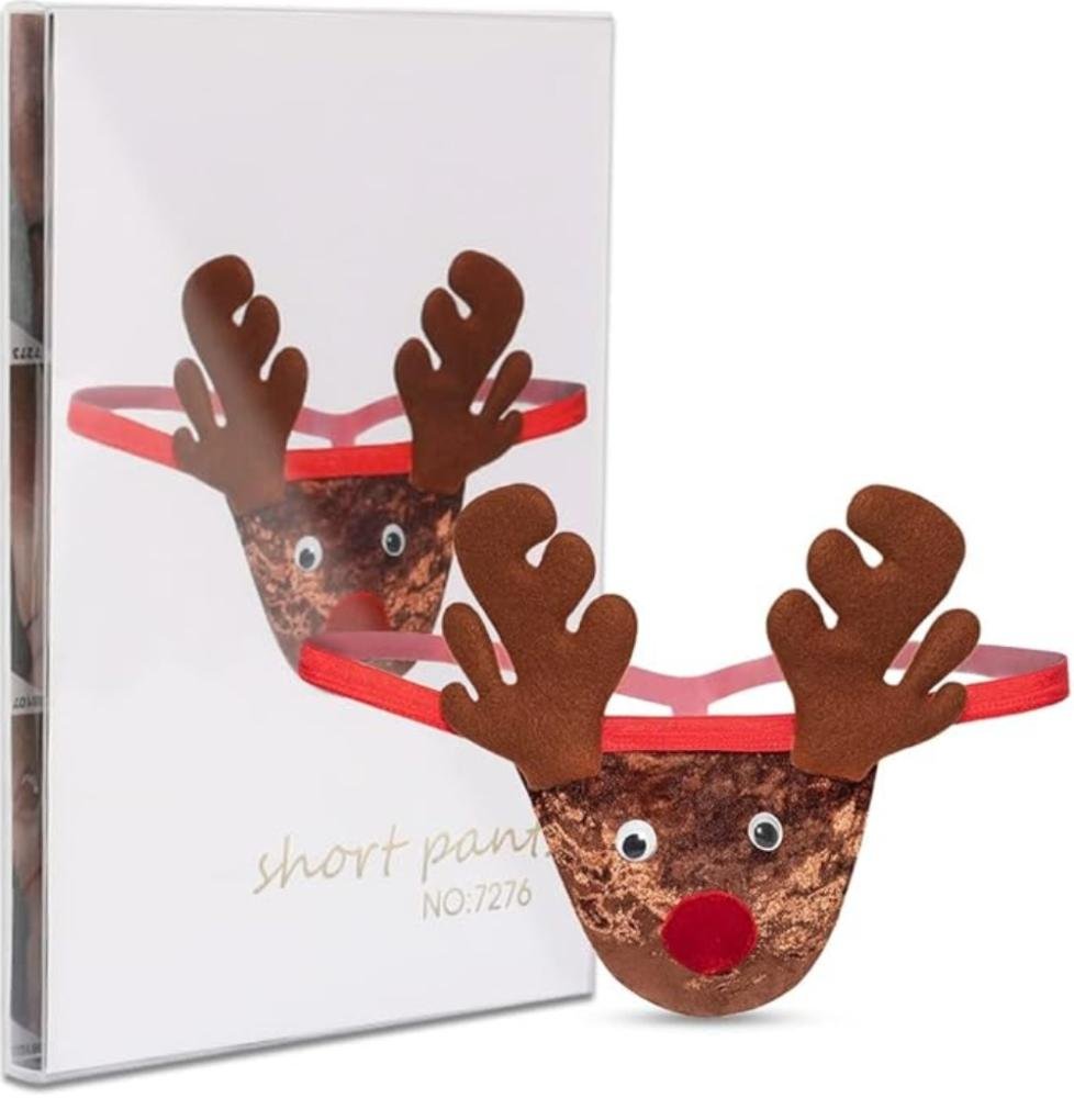 Calzoncillo navideño con diseño de reno festivo, ideal para regalar, bromear o sorprender en celebraciones de Navidad y fiestas temáticas.