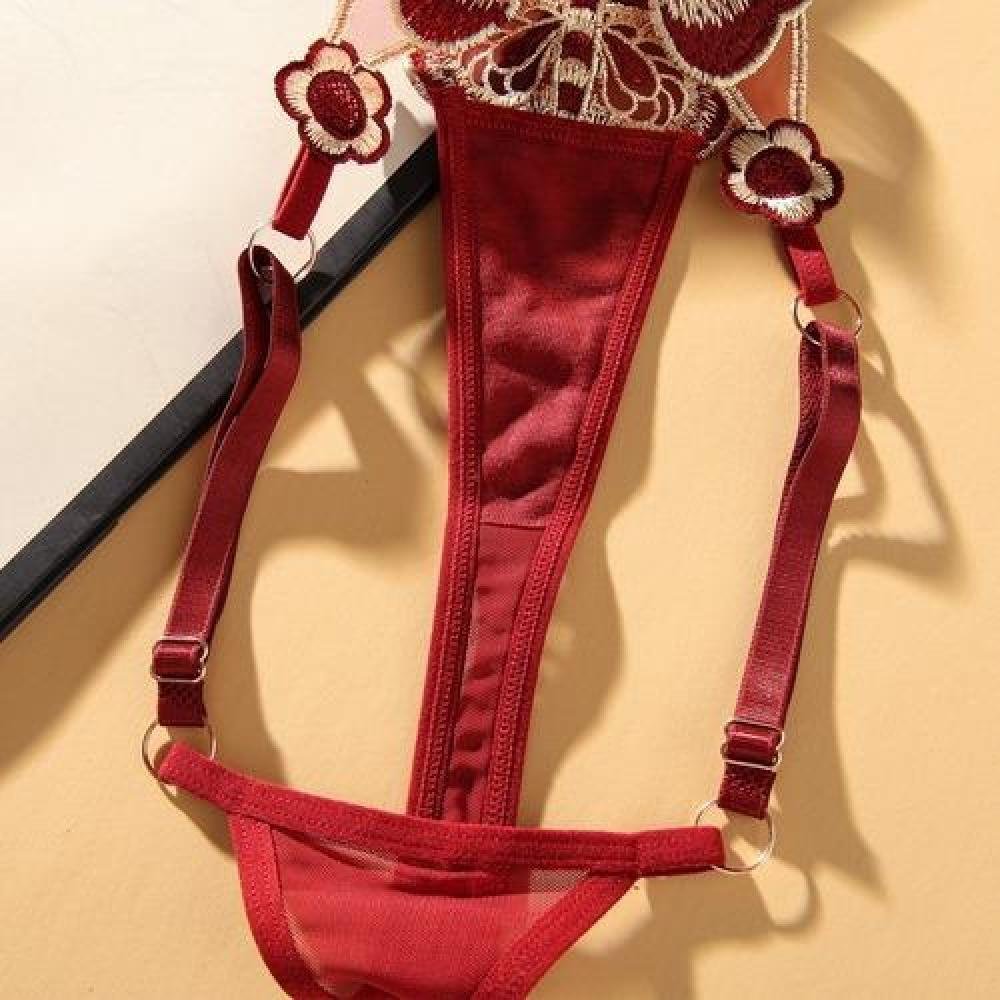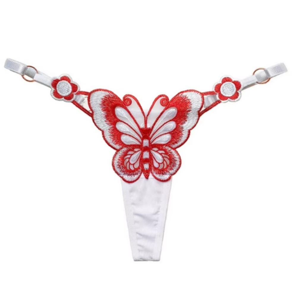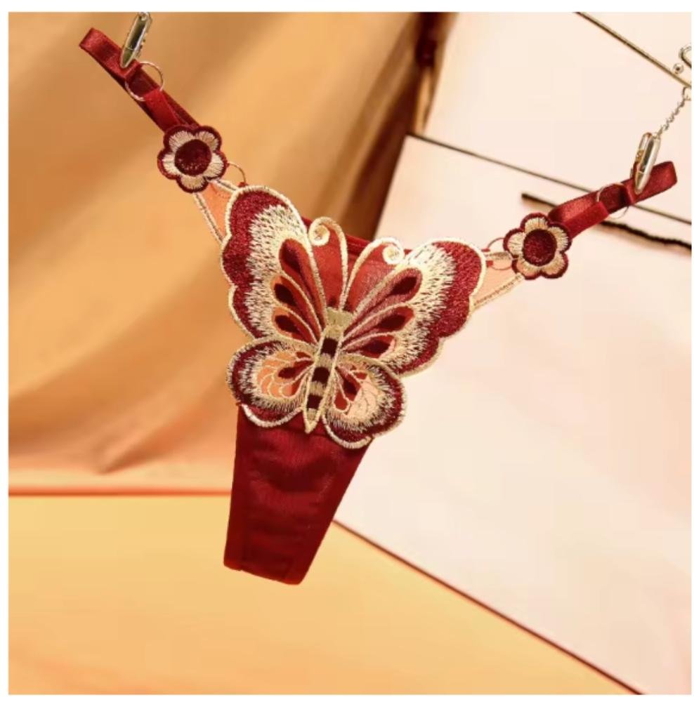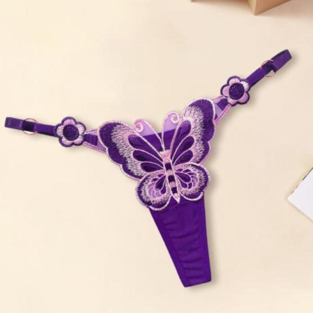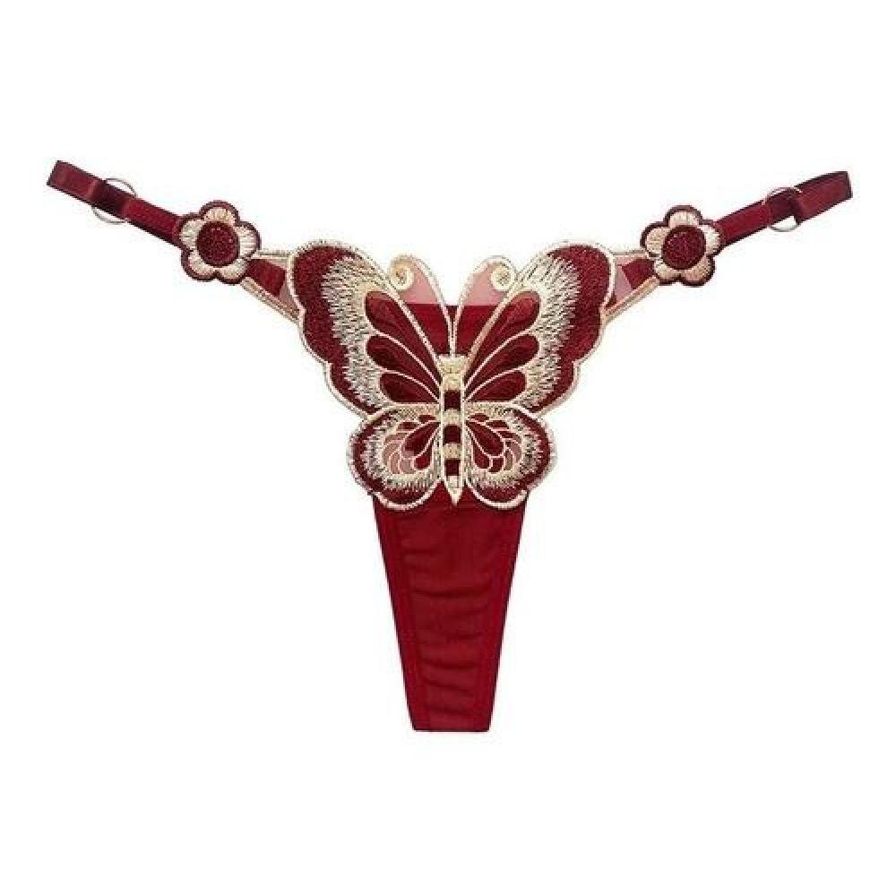 Con un diseño único y llamativo, esta colaless combina bordado artístico en forma de mariposa con delicadas cintas ajustables que realzan la silueta. Es la pieza perfecta para quienes buscan lencería exótica que mezcle elegancia, comodidad y un toque atrevido.