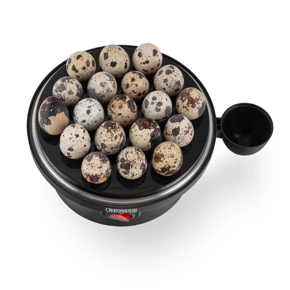 Gracias a su sistema de cocción controlada, el Thomas TH-80 distribuye el calor de manera uniforme, asegurando resultados óptimos en cada preparación. Solo es necesario agregar la cantidad de agua indicada, colocar los huevos en su soporte, encender el equipo y dejar que el proceso se realice automáticamente. Una vez finalizada la cocción, el dispositivo avisa mediante señal sonora, evitando sobrecocciones y permitiendo un uso despreocupado.
