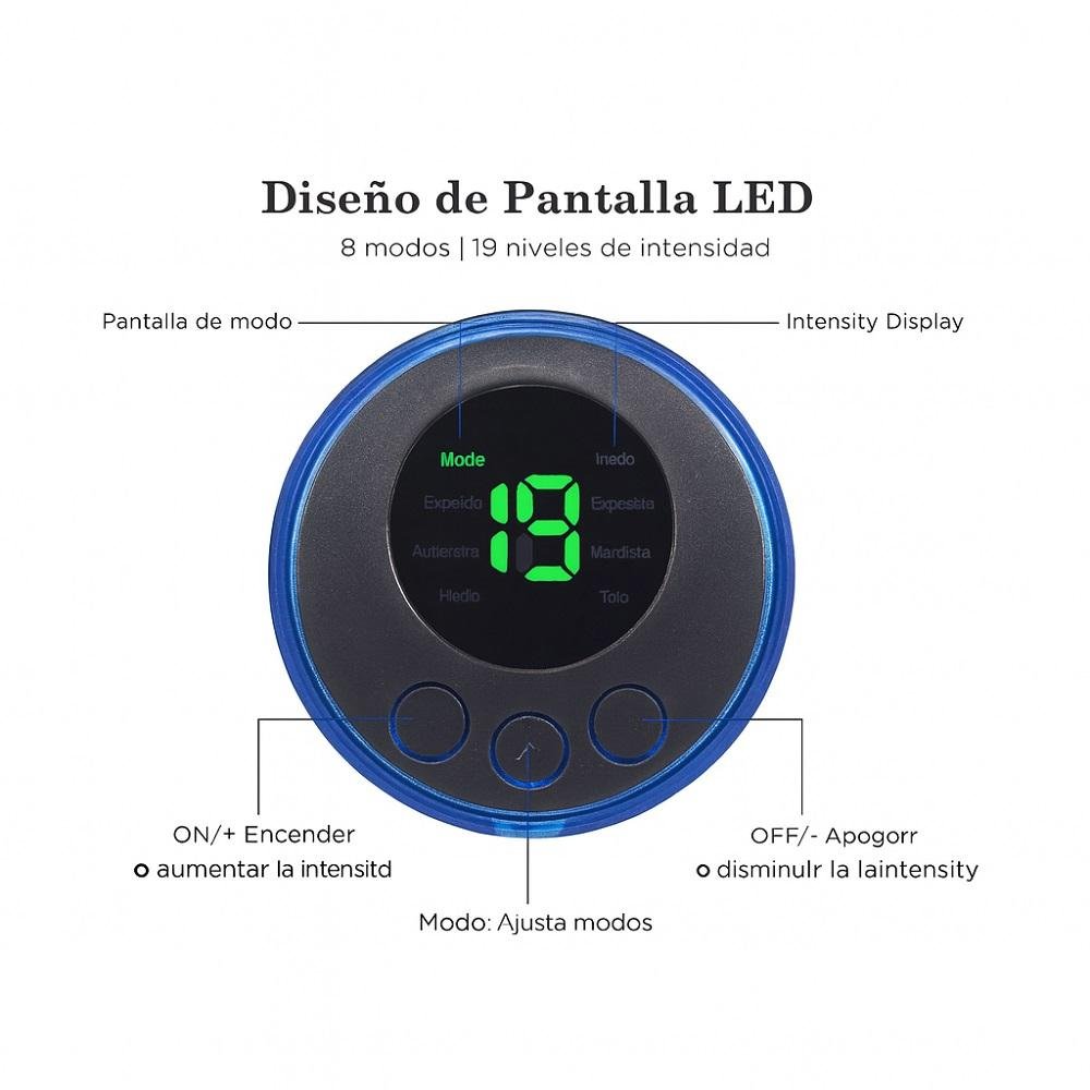 Modos de masaje: 6 modos preprogramados (amasado, golpeteo, acupresión, etc.).