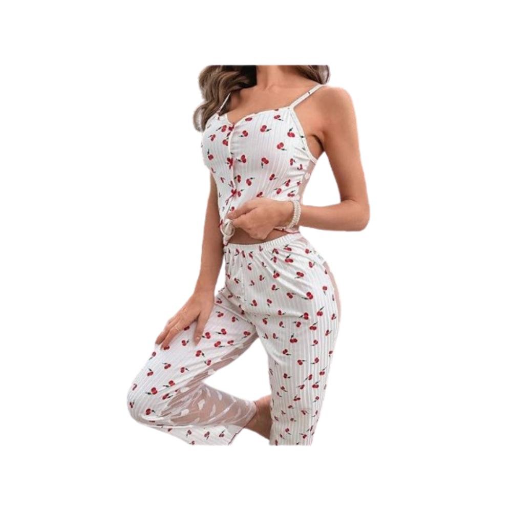 Características: Conjunto de tela de malla para mujer, conjunto de 2 piezas para mujer, empalme de tela de malla transparente, apariencia de Estampado de cereza en forma de corazón. Estilo dulce, mostrando tu estilo de vida perezoso. Disfrutemos plenamente de estos elegantes y ajustados conjuntos de dos piezas.