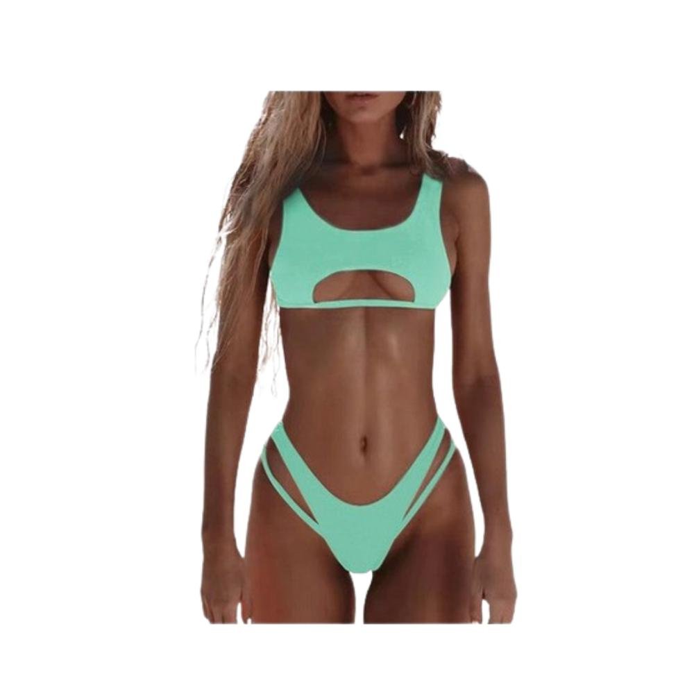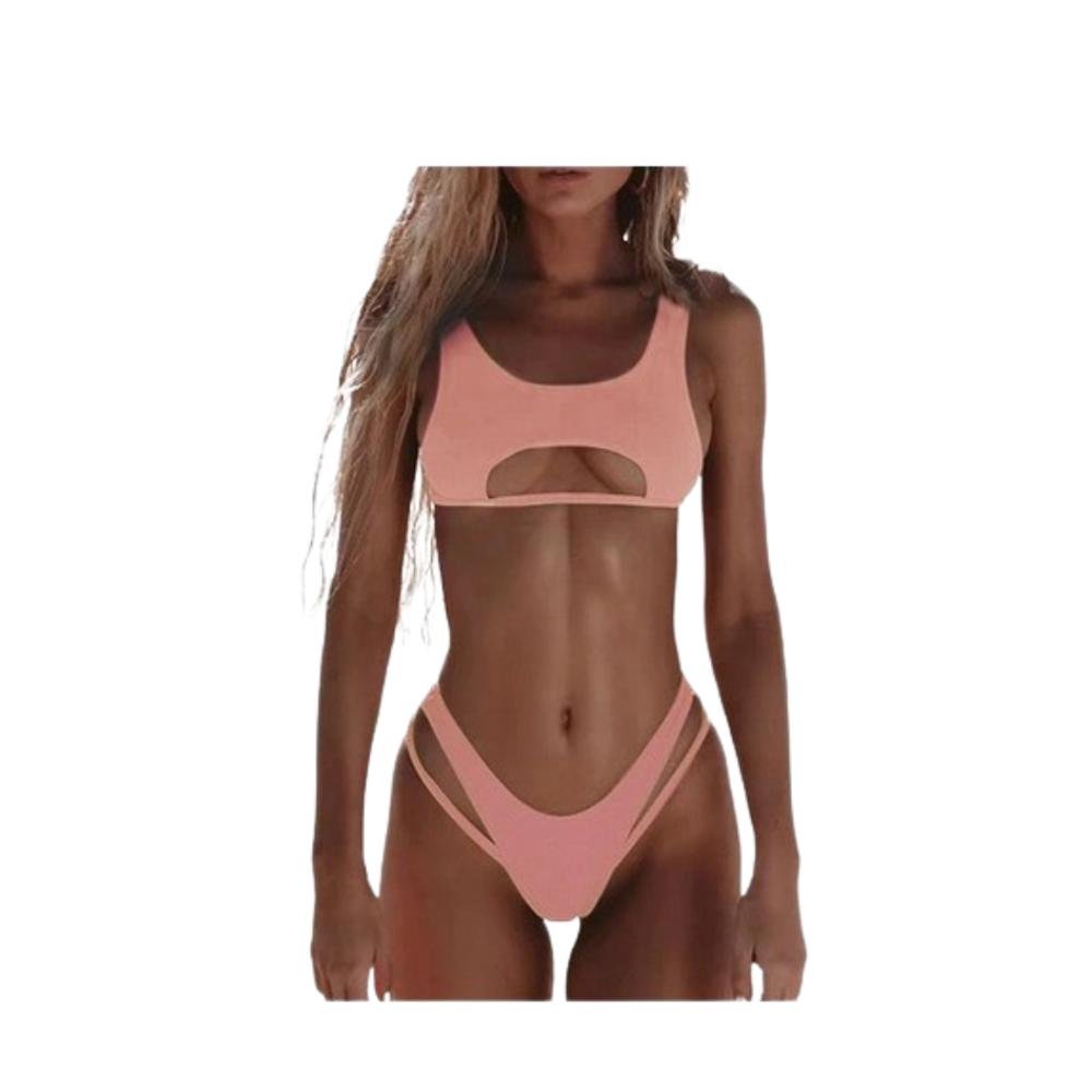 Luce espectacular este verano con nuestro Traje de Baño Bikini Corte Alto Ahuecado Sexy de 2 Piezas, diseñado para realzar tu figura y brindarte comodidad en cada movimiento.