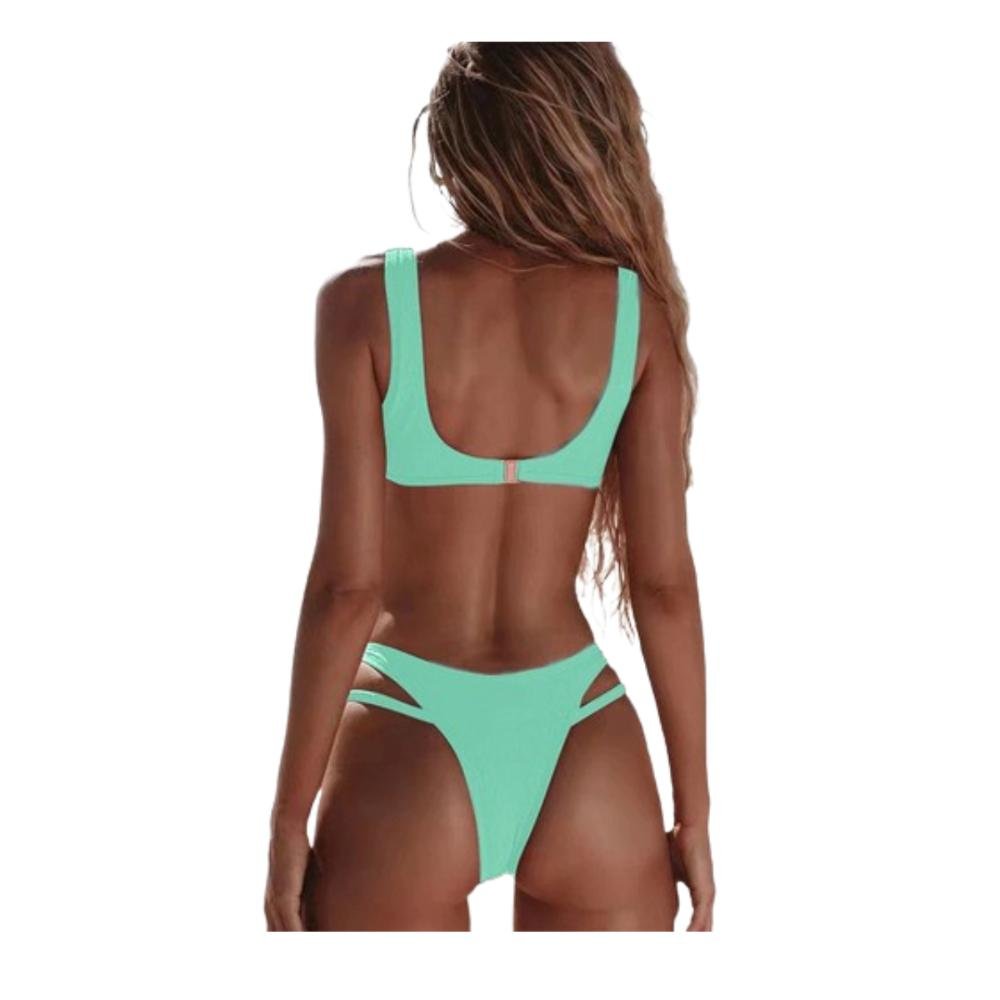 Fabricado en materiales de alta calidad, suaves, resistentes al cloro y de secado rápido, este bikini combina estilo y funcionalidad, ideal para playa, piscina o vacaciones. El diseño ajustable permite una mayor adaptabilidad, asegurando que se amolde perfectamente a tu silueta.